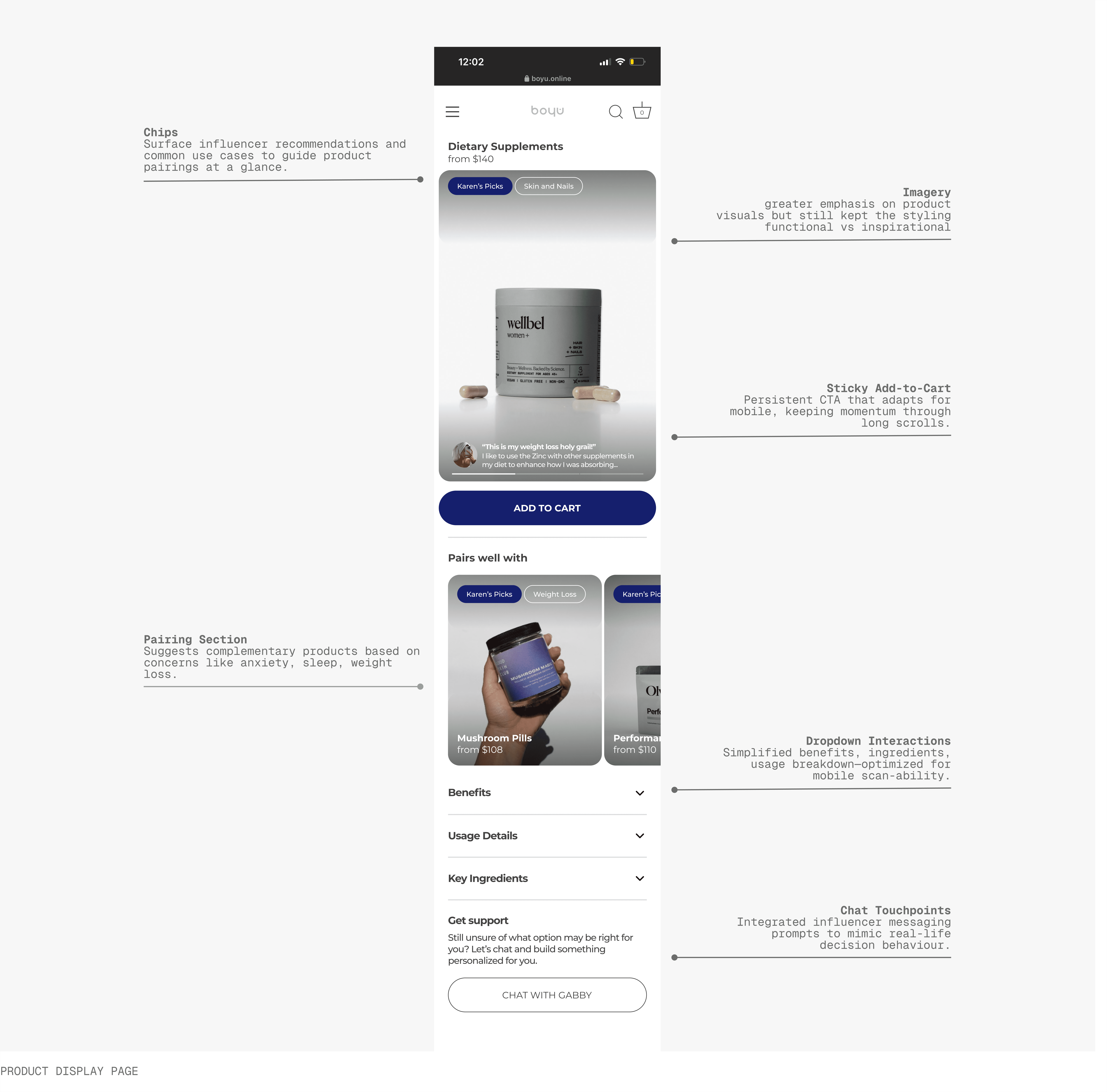 The Approach: Built a high-performance layout for "must-haves" like benefits, usage details, and product pairings for Product Display page.